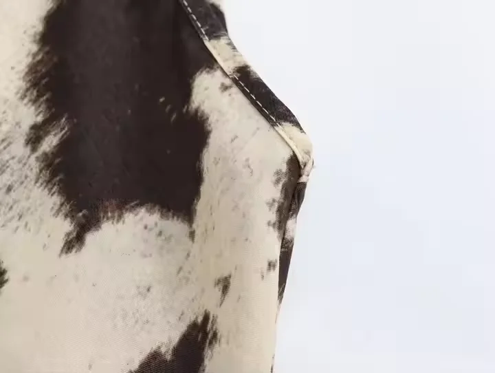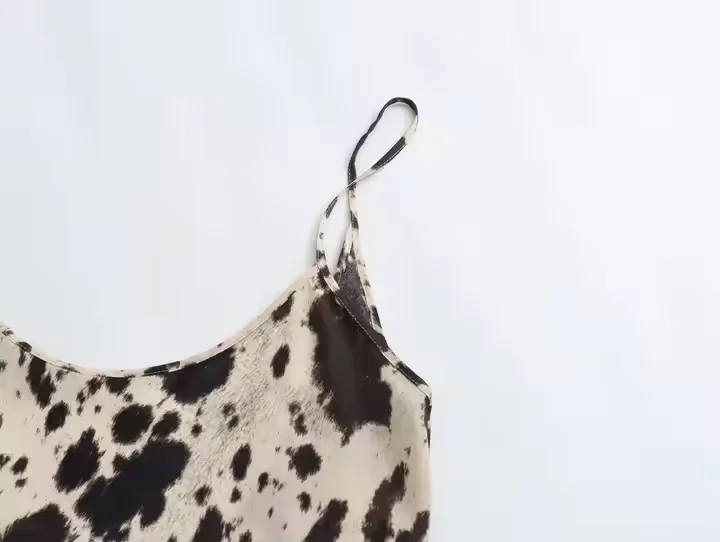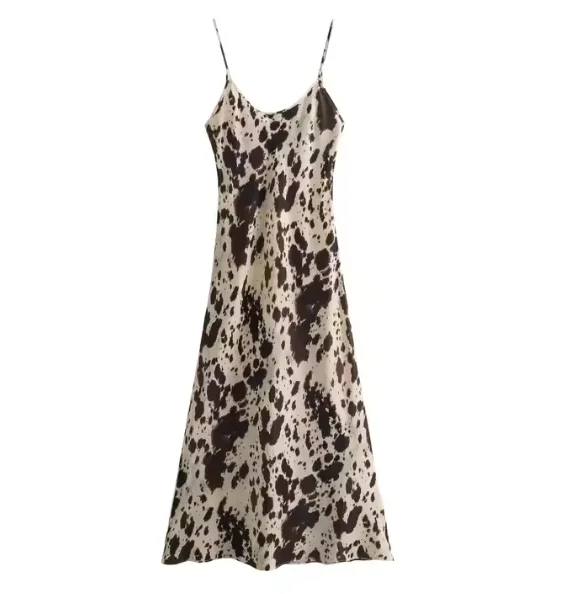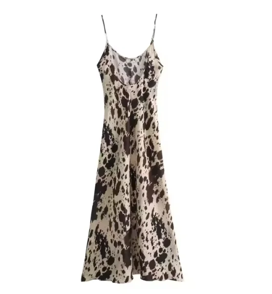 Stylish Beige Brown Leopard Print Maxi Dress Backless Cut-Out Design Casual Fashionable Features Natural Waistline Zipper